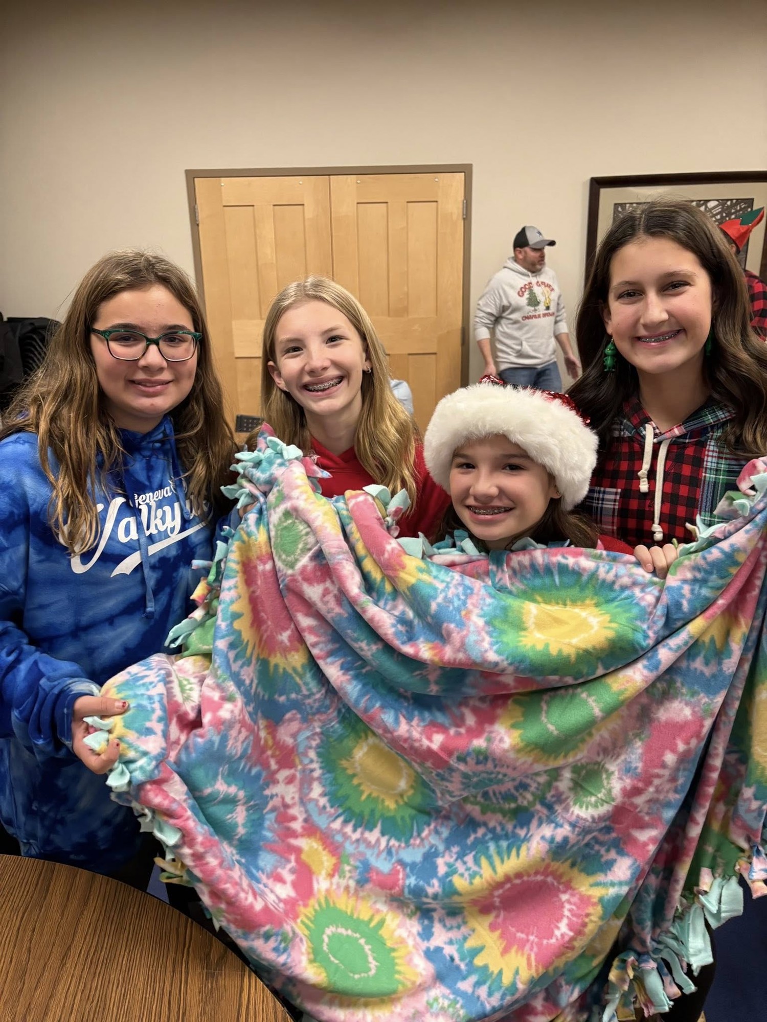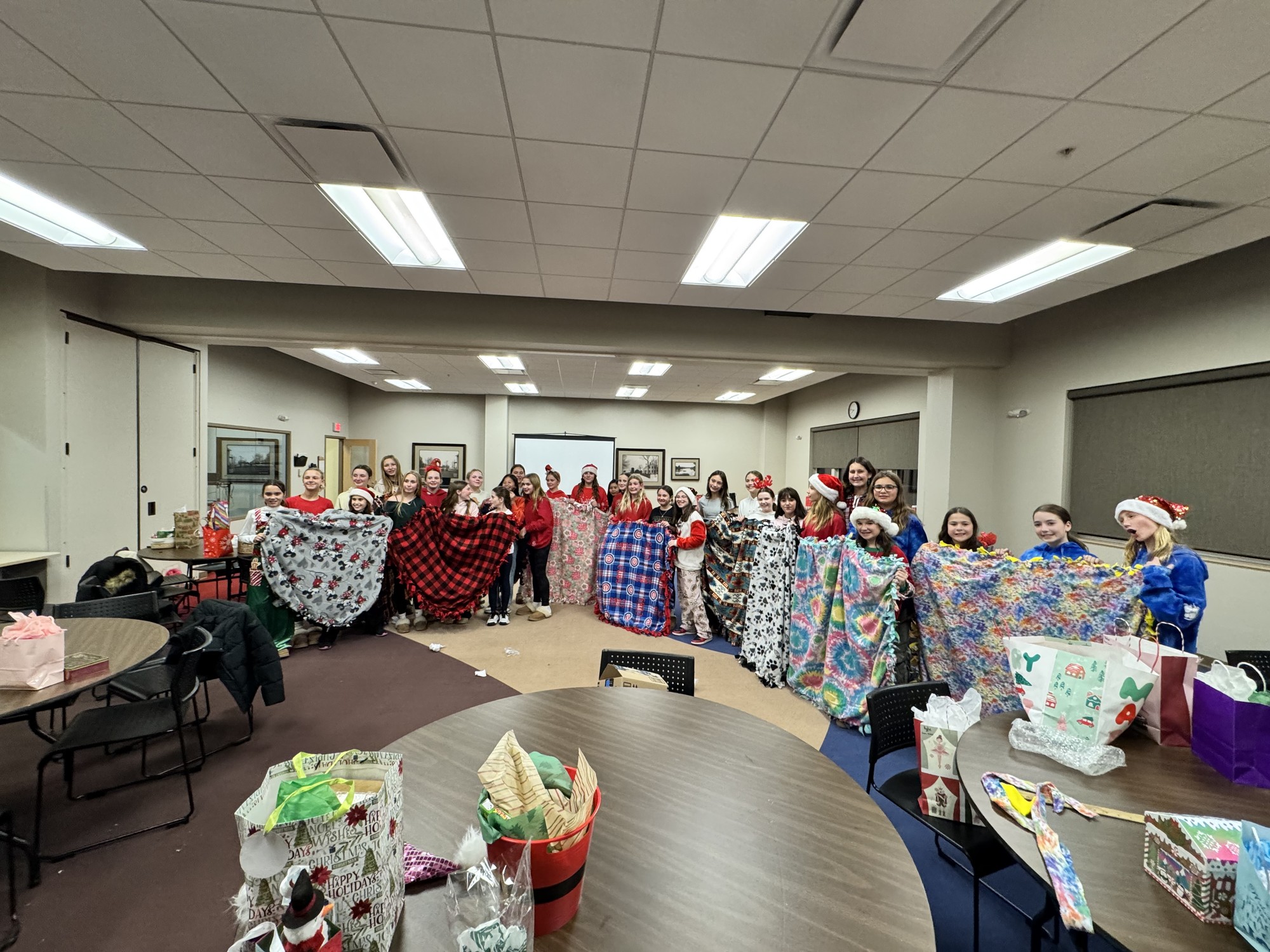 Our sister program brought together all 3 levels to make blankets for cancer patients, have a holiday gift exchange, and celebrate the season!